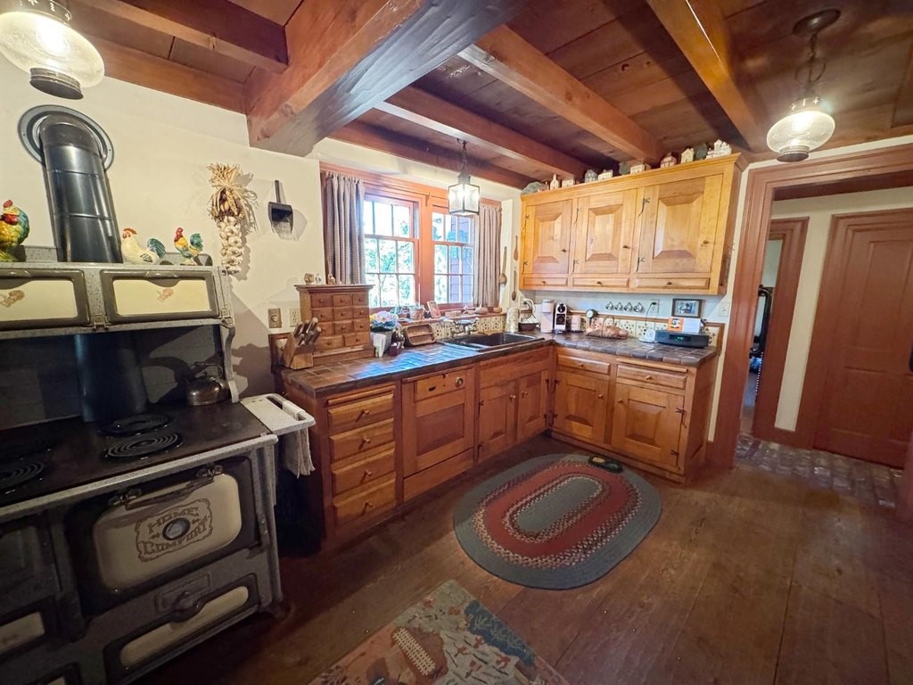 Imagine stepping back in time with this first-time-on-the-market gem, perfectly nestled at the end of a quiet cul-de-sac. This beautifully landscaped home exudes timeless charm and craftsmanship at every turn. A vintage kitchen and decor are surrounded by large picturesque windows, filling each room with natural light and serene views. Inside, hand-hewn flooring adds warmth and character, complemented by three stunning fireplaces that create cozy gathering spaces. The custom vintage hardware on doors and lighting reflects an attention to detail rarely seen today, perfectly blending authenticity and artistry. This spacious home offers ample storage, including a 3 car garage, 680-square-foot unfinished attic and a 1, 700-square-foot finished and temperature controlled space formerly a dedicated train room providing endless possibilities for hobbies or expansion. A separate home office offers privacy and flexibility for remote work or creative pursuits. Experience the grace and charm of this one-of-a-kind residence, Come sit and enjoy the large deck and listen to nature and the creek below. located just minutes from historic downtown Grass Valley. A true treasure for those who appreciate history, craftsmanship, and a peaceful setting.